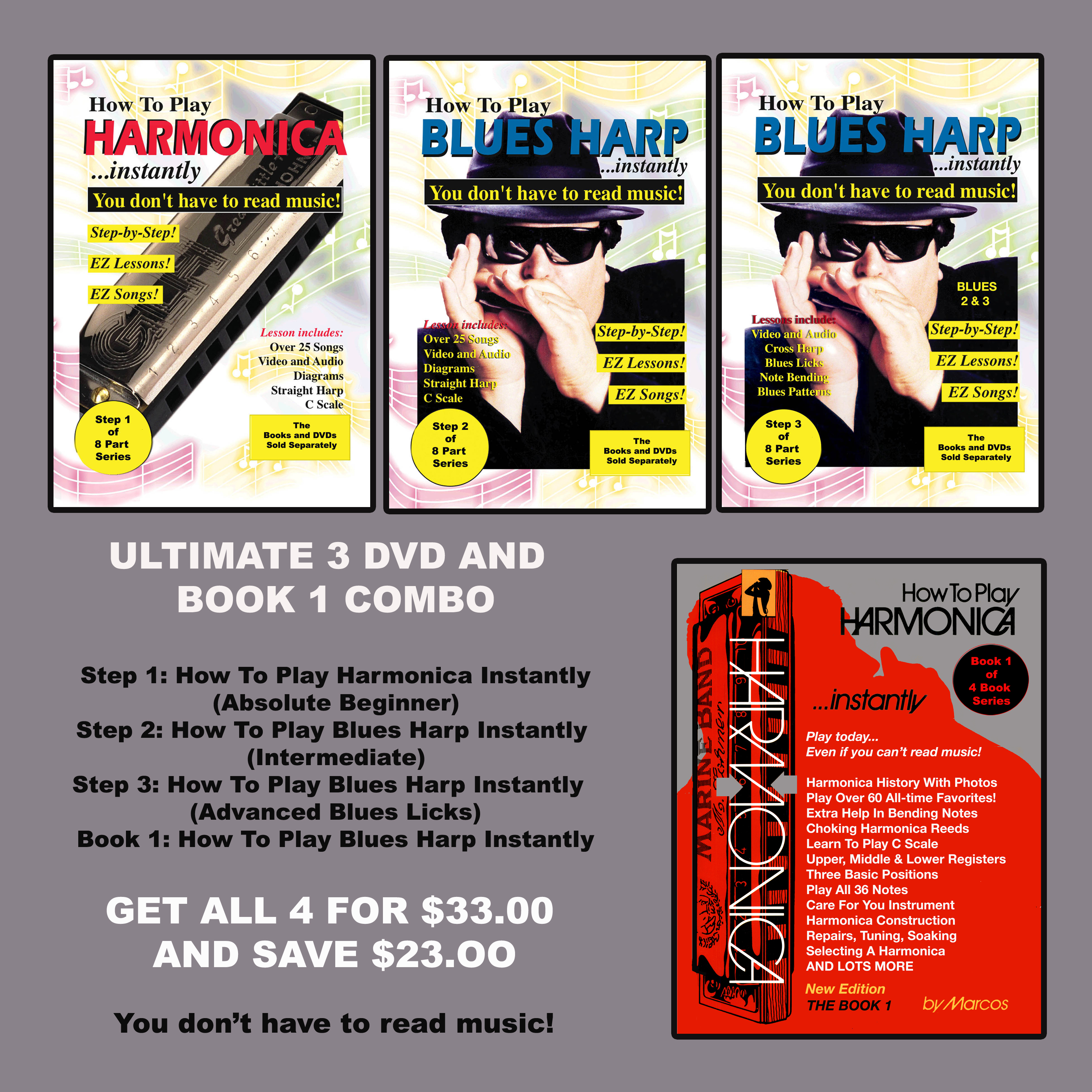 and ”How To Play Chromnatic Harmonica Instantly” contain lessons,